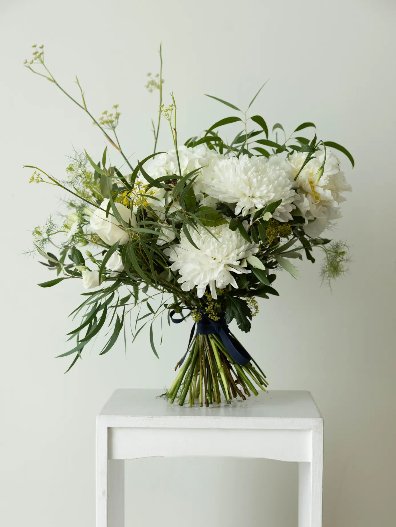 Ramo en tonos blancos y verdes con flores de temporada, trasmitiendo mucha frescura (Foto M)
