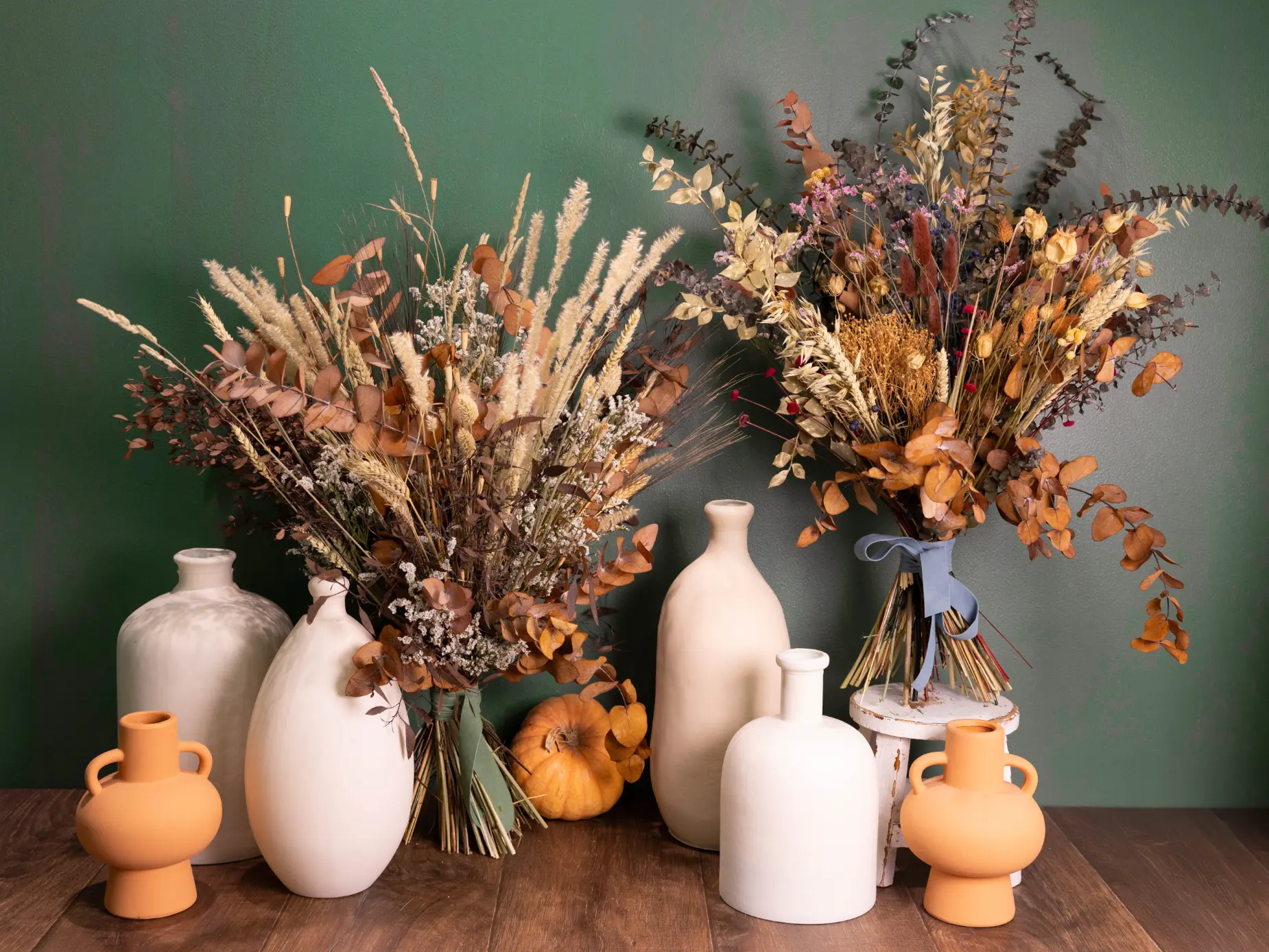 Ramo con flores secas en tonos neutros, perfecto para cualquier rincón (Foto de L)